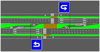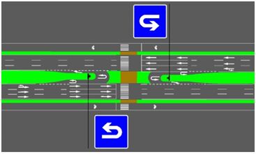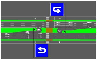 在交通工程設(shè)計中,為滿足路段車輛掉頭通行需求,可根據(jù)條件在路段渠化允許掉頭車道。城市快速路、無中央分隔帶的主干道上嚴(yán)禁設(shè)置路段掉頭,在設(shè)置車輛掉頭車道時,應(yīng)保證其對向交通為非飽和流量狀態(tài),同時道路寬度應(yīng)能滿足區(qū)域準(zhǔn)許通行的最大車輛掉頭行駛最低尺寸。以下列出路段允許掉頭的幾種設(shè)計方法和施策,供同行參考: