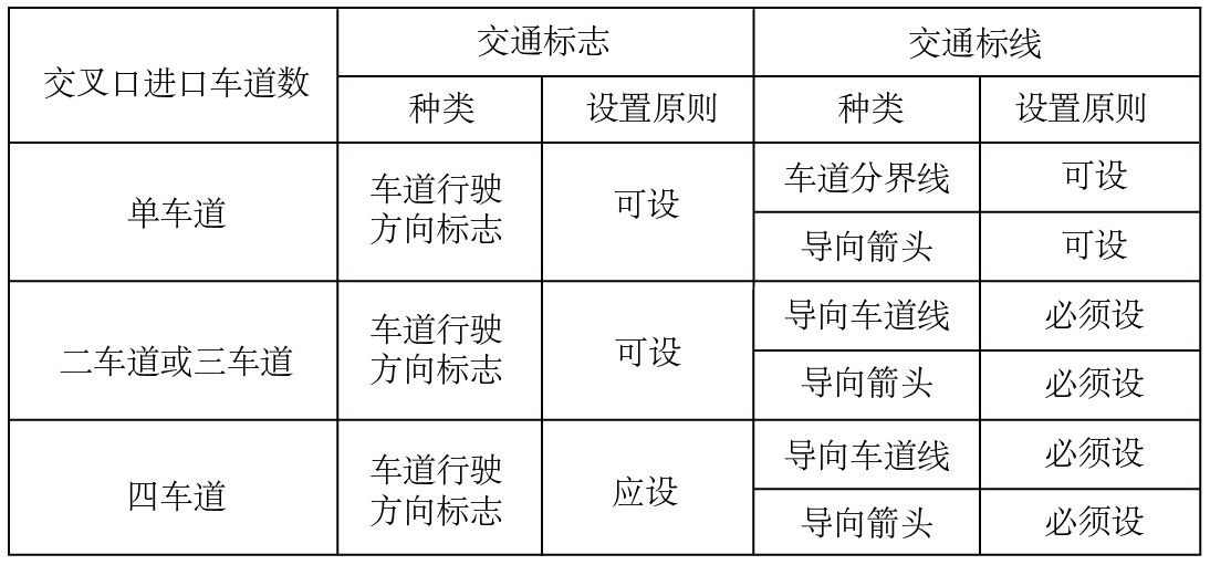 2)最大限度利用道路寬度合理設置車道的原則:積極開辟附加車道,增加進口道機動車道數;