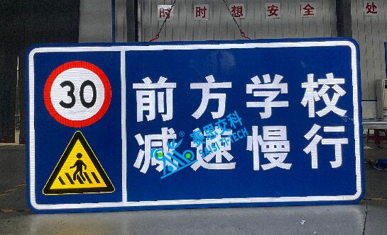 其主要功能:將禁令、警告、指示等多種交通語言信息,根據交通安全管理需要,融合在一塊交通標志版面中,實現將危險因素預告、駕駛行為禁令、道路指示信息綜合體現,在信息表達上更加飽滿、充實,特別針對農村學校周邊道路交通安全管控、農村大型橋梁進出口交通管控、農村商貿區進出口交通管控等。采用半透主動發光標志工藝,效果更加。