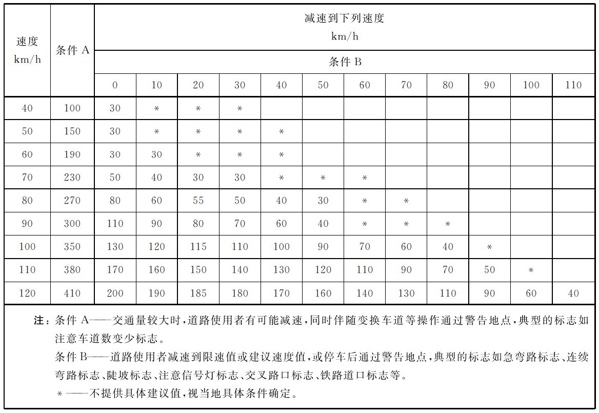 交通事故管理區標志采用專用的熒光粉紅色為底板,區別于常見的藍、黃、綠色為底色,讓標志從視覺上更具沖擊力,司機在很遠處看到粉紅色標志,也許字樣還未看清,但已明白前方區域肯定與事故管控有關。本標志用于警告前方路段正在進行道路交通事故管理,車輛駕駛員應減速慢行、停車等候或繞道行駛,應根據道路限速情況,設置于事故發生區域前方的適當位置,前置距離一般值,參考如下列表。