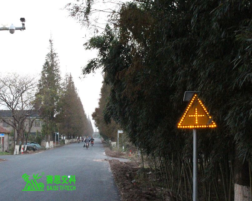 A)支線上設置減速讓行、或停車讓行標志,有條件可采用太陽能主動發光標志,或于標志上方配置太陽能爆閃警示燈。