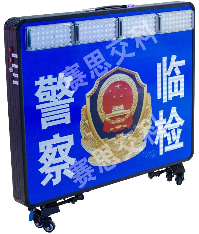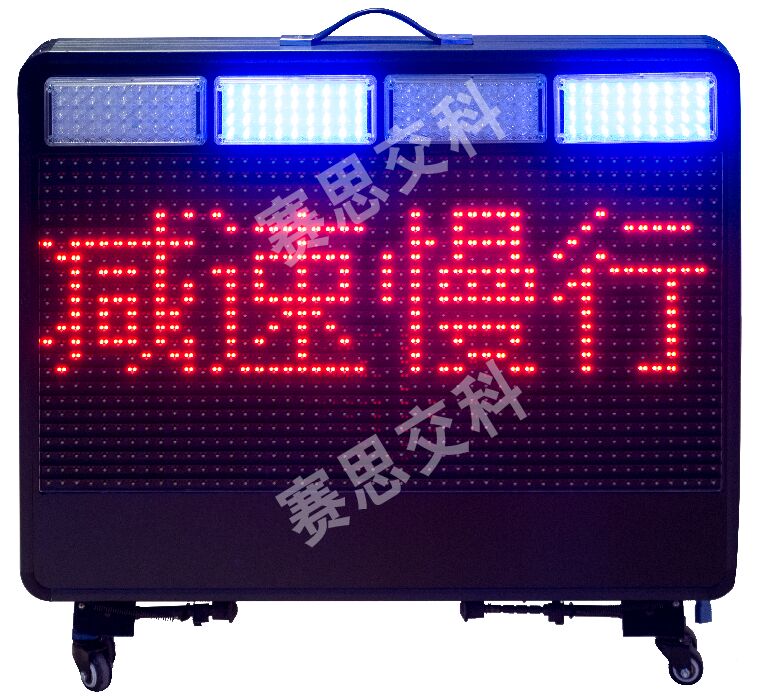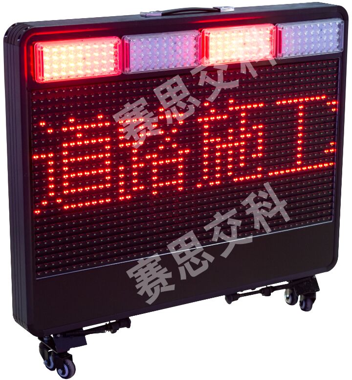 2、警示屏正面、背面各鑲嵌2組紅藍(lán)爆閃警示燈,交替閃爍。
