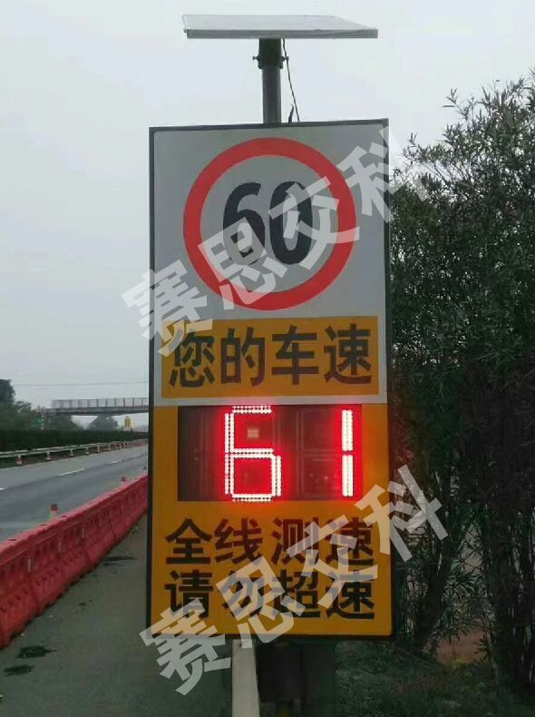 1、基本說明:該款太陽能雷達速度反饋標志,其中版面上方限速值部分,根據管理需要設置;下方設置紅、綠雙色顯示屏。另根據需要設置警示標語。